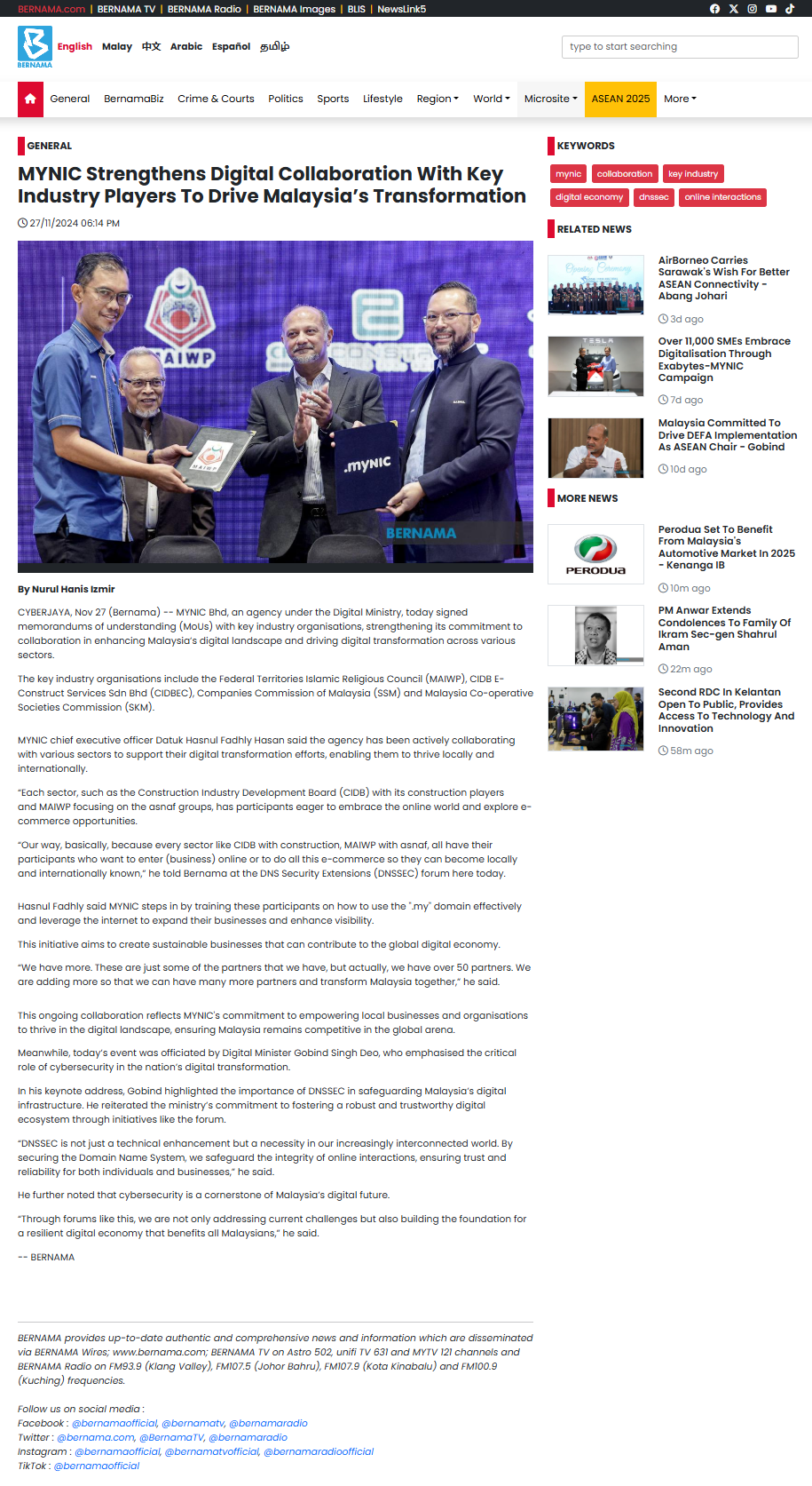 MYNIC Perkukuh Kerjasama Digital dengan Perjasama Industri Utama